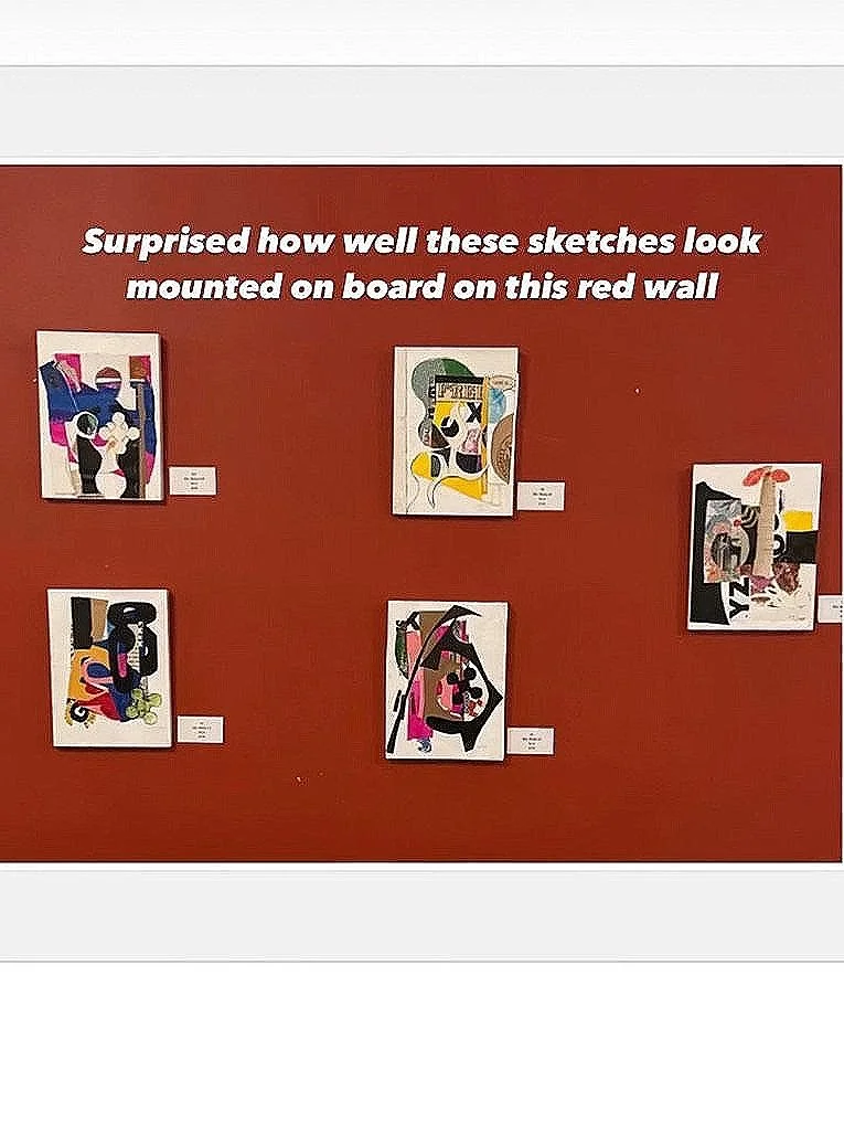Q) What can a visual artist do when away from the studio? A) Make art anyway! After many years in corporate life my husband needs to escape the not great winter weather in Cleveland OH. So we travelled by car making many stops across the county on our way to Southern California. Without my space and supplies I "worked" anyway. As with other artistic disciplines requiring skill such as voice or instrumental, for me making visual art is a practice. During our trip to the southwest United States, I kept in touch with my creativity by making 12 of these small collages, using stencils, found objects, packaging, and vintage magazines and ephemera. And we had fun fun fun... (you know the rest). To check out all 12 of these small collages visit my Instagram.